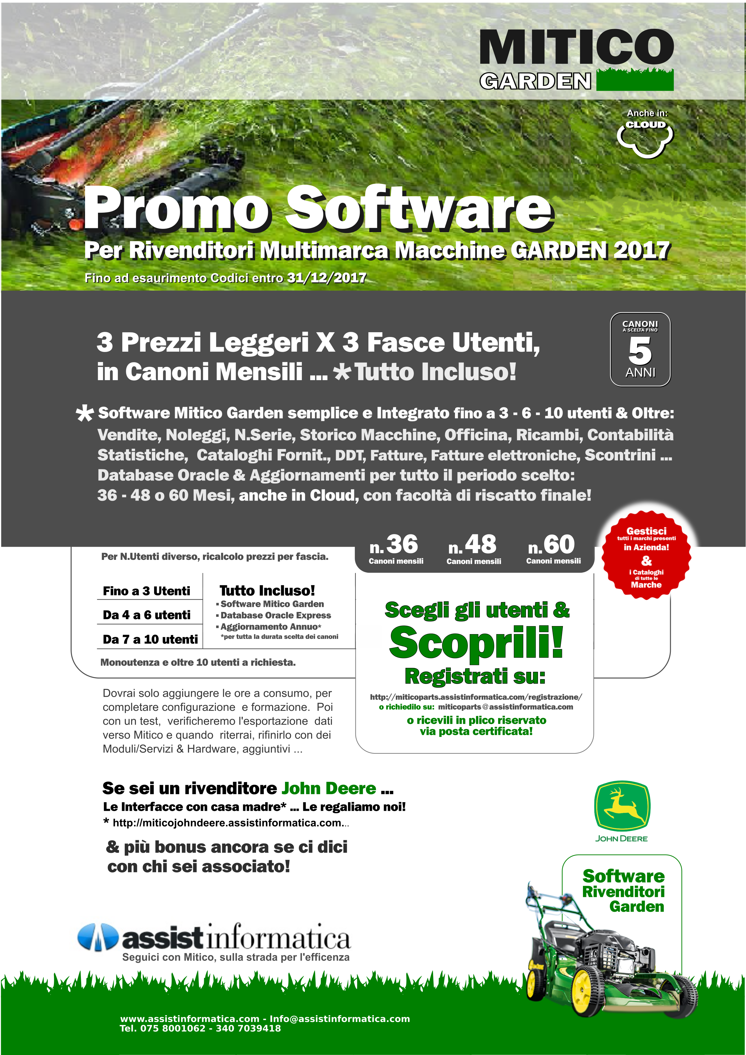 Preventivi, vendite, officina, ricambi, contabilità, noleggi, numeri di serie/telai, statistiche sono le aree coperte dal software. In tre diverse versioni: BASE, MEDIUM e TOP a seconda della copertura di utenti e servizi attivabili. Facile da usare e studiato per il settore dei rivenditori di macchine giardinaggio, rende subito operativi consentendo notevoli risparmi in ore lavoro.